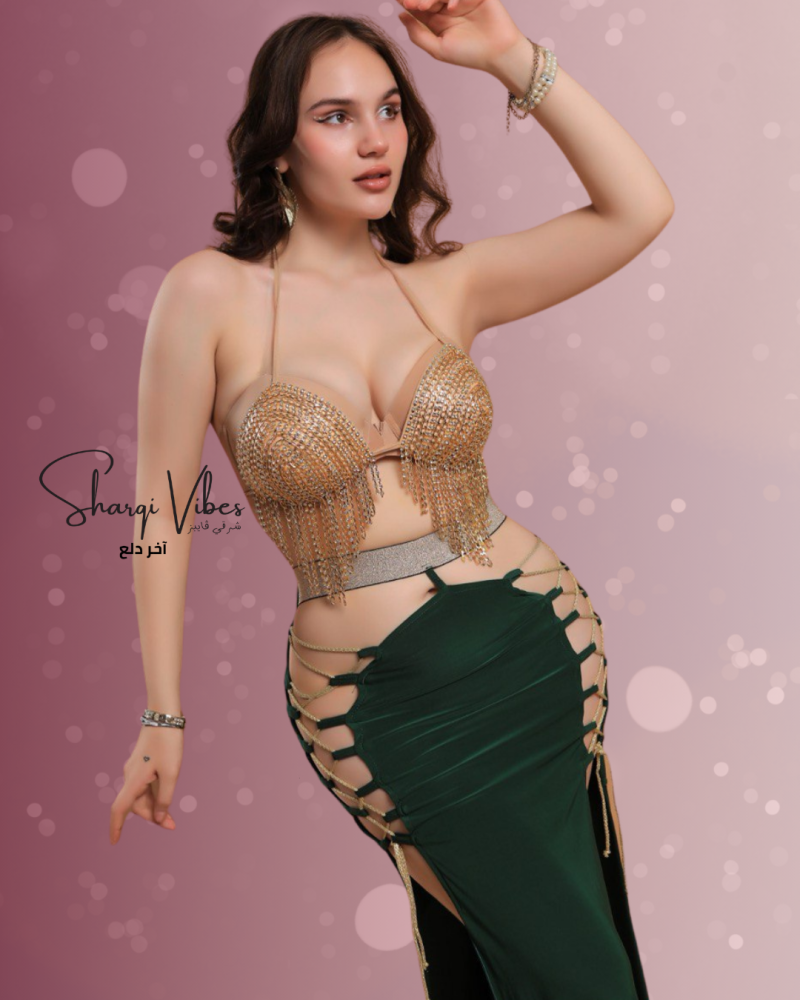 بدلة رقص شرقي حديثة من قطعتين (ذهب)