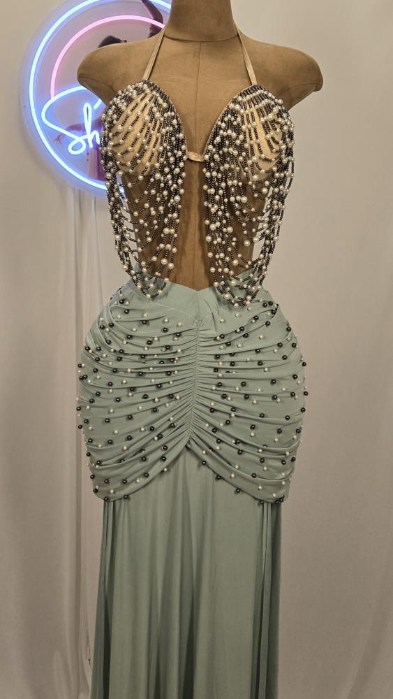 تنورة بشغل لولو فضي غامق و ابيض و صدرية بشغل لولو فاخر