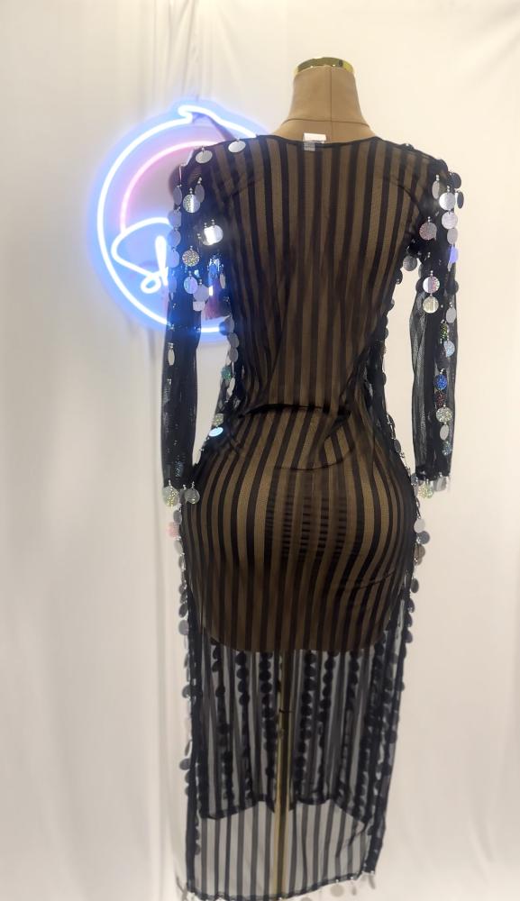 القماش تول مخطط اسود مع ترتر بالذهبي خطوط طولية